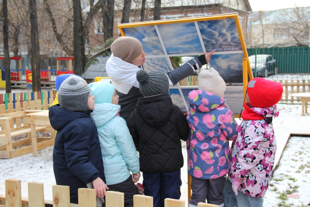 В структурном подразделении детского сада № 7 "Радуга" на ул. Павлика Морозова прямо на территории оборудовали небольшую метеостанцию. Там есть солнечные часы, флюгер, ветряной рукав, барометр, гигрометр, термометр, ловец облаков, измеритель осадков. Данные ежедневно заносят в календарь наблюдений.