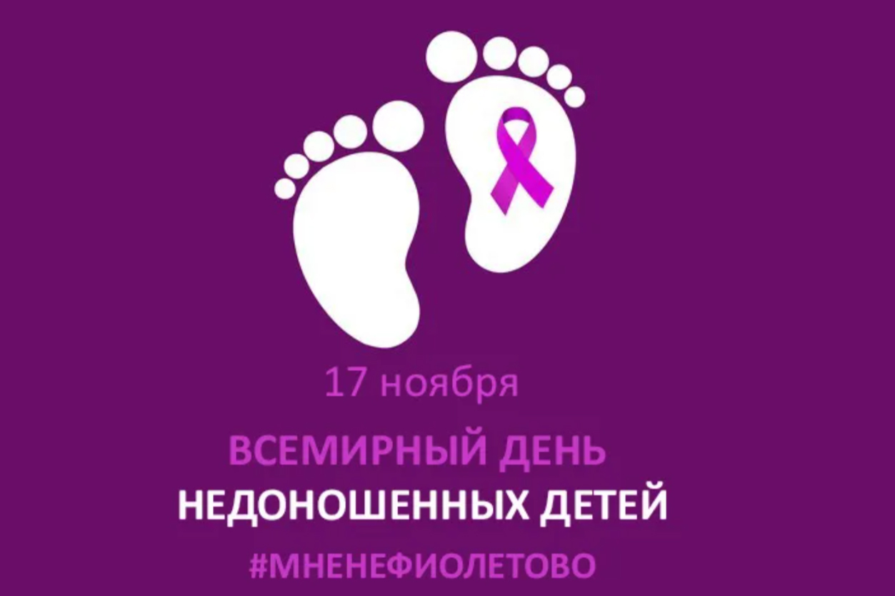 "Мне не фиолетово" - это всероссийская акция, которая проводится ежегодно 17 ноября в рамках Международного дня недоношенных детей. Цель акции - привлечь внимание к проблемам недоношенных детей и их семей, выразить солидарность с ними. В рамках акции проходит, например, фиолетовая подсветка зданий и мероприятий.
