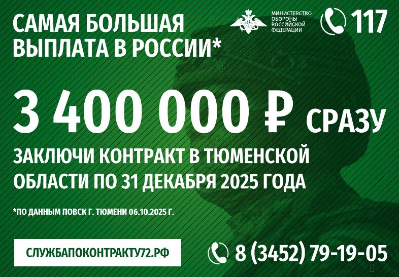 Повышенная выплата для граждан, заключивших контракт с Минобороны РФ в Тюменской области, продлена до конца декабря 2025 года.