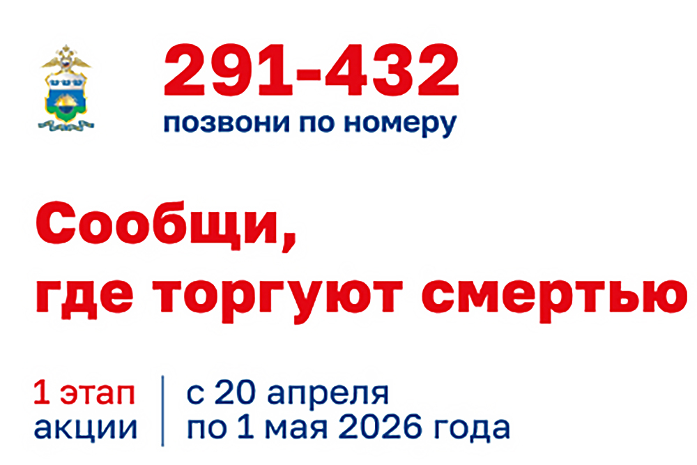 С 20 апреля по 01 мая 2026 года в Тюменской области проходит первый этап Общероссийской антинаркотической акции "Сообщи, где торгуют смертью". Главной целью акции является привлечение общественности к участию в противодействии незаконному обороту наркотиков, получение значимой оперативной информации, оказание квалифицированной помощи и консультирование по вопросам лечения и реабилитации наркозависимых лиц.